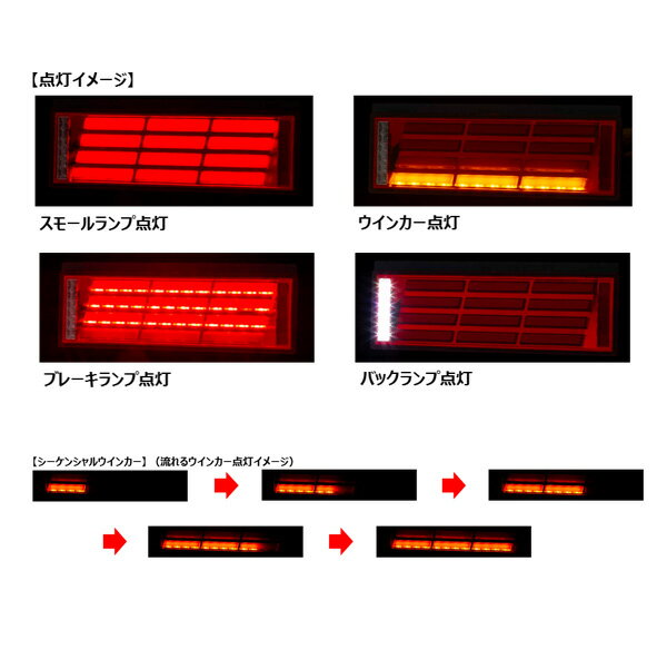 スモール/ブレーキ、ウインカー、バックランプを搭載した大型車用迫力サイズのオールインワンモデル!シーケンシャルウインカー(流れるウインカー)を採用したスタイリッシュデザインのNewモデルテールランプです純正テールランプよりサイズを大きくすることで視認性向上による安全性アップを実現迫力サイズのフルLEDテールランプで圧倒的な存在感を放ちますハイフラッシュ制御用キャンセラー内蔵高輝度228LED&24LEDライトバーを採用片側あたり、スモールに12LEDライトバー、ブレーキに36LED、ウインカーに24LED、バックランプに6LEDを使用【ご注意】※テール/ブレーキランプ球切れ警告付車両には別途抵抗器が必要ですカラー:レッドレンズ/クロームサイズ:縦:217mm 横:613mm 奥行:102mm品番:OCKN-RC-01メーカー:花魁JAPAN/OIRANJAPAN