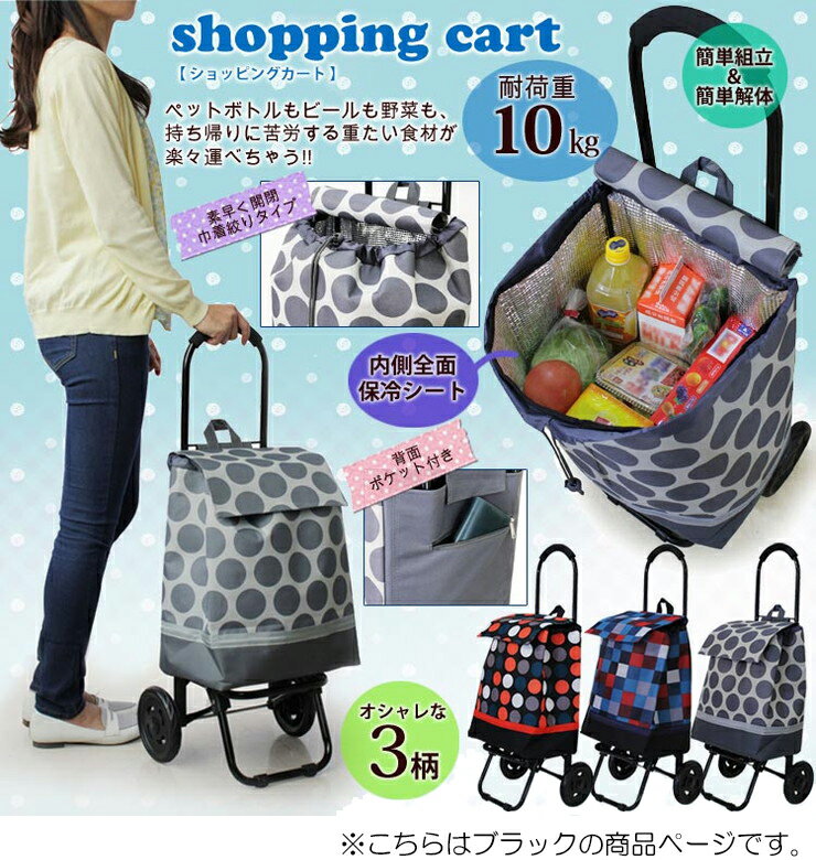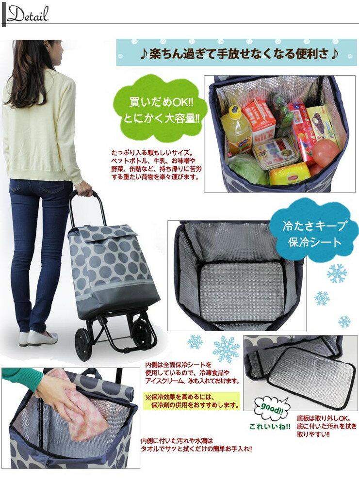 保冷機能有り、お買い物に便利なショッピングキャリーカート、折り畳み式