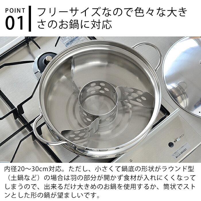 商品名燕三条 おでん仕切り商品詳細サイズ約 W23×D23×H7cm重量約113g素材ステンレス鋼原産国日本 / 燕三条備考・内径20〜30cmのお鍋に対応 ※お鍋の形状によって変わりますのでご注意下さい。
